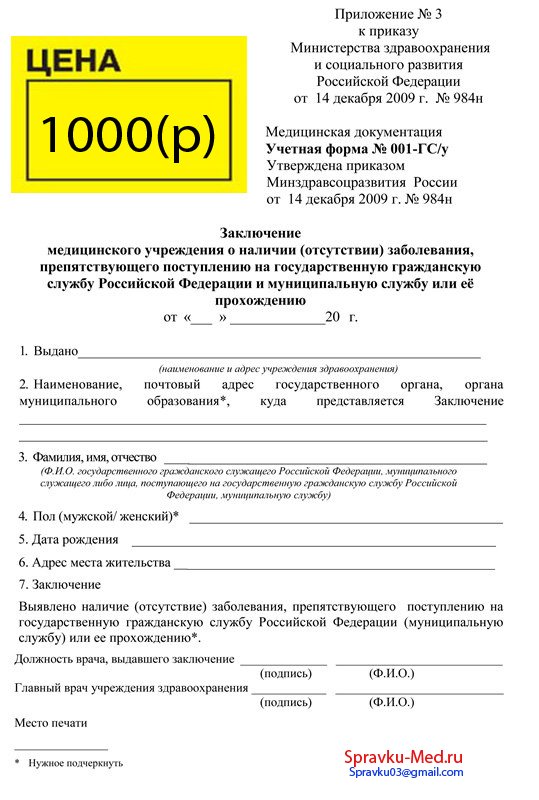 Поводы для выдачи справки для несение госслужбы формы 001 гс у