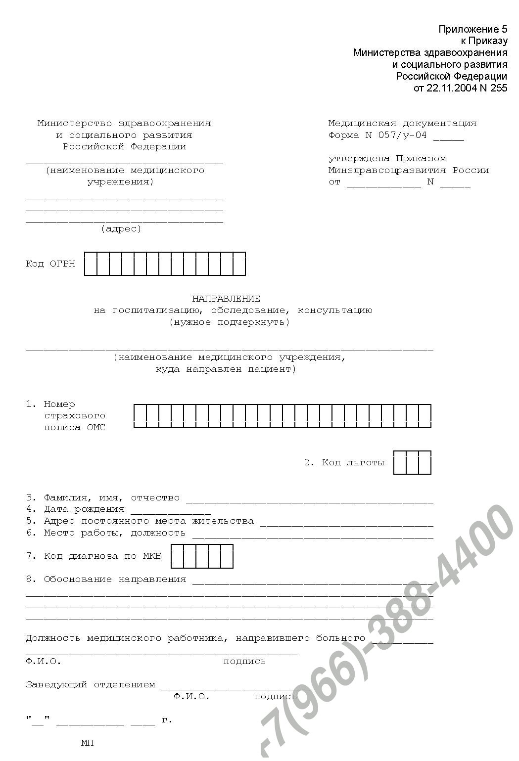 Купить справку 057 у 04 направление на госпитализацию 1000 рублей