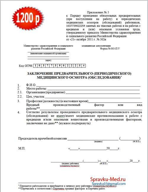 Справку обязательно должен подписать главный врач, а также ставится печать медицинского учреждения, которое выдало медсправку 302н. В зависимости от результатов общего обследования, вас могут направить на дополнительное исследование.