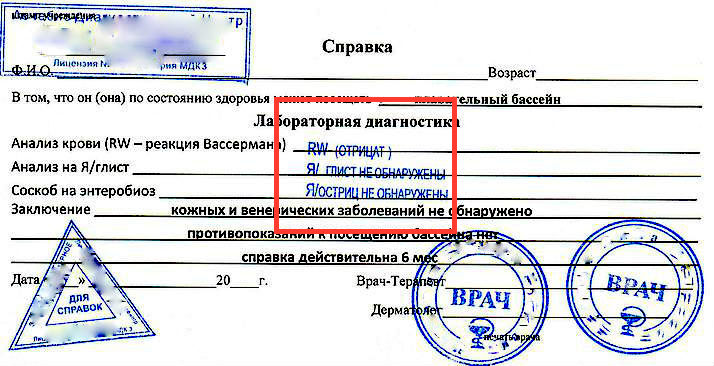 Хорошие водные процедуры еще ни одному человеку не принесли вреда, а вот добавить позитива, сил и здоровья очень даже хорошо смогли. Но чтобы ходить в бассейн, оказывается одного только желания мало, ведь для таких посещений взрослый человек или ребенок должен быть полностью здоровым. Для посещения бассейна нужно предоставлять специальную медицинскую справку, а за ней так не хочется идти в больницу.